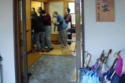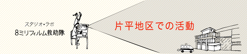 片平地区では、8月から10月にかけて回覧板を通じて地域に8ミリフィルムの提供を呼びかけました。片平市民センターの呼びかけに応じ、8ミリフィルムで仙台の街並みを熱心に撮影してこられた方のご家族から、貴重な8ミリフィルムを多数ご提供いただきました。その成果として、地区のお年寄りを招いて開かれる「かたひらシニア麟経堂(りんけいどう) 花壇大手町地区お茶っこ会」の中で、2種類のフィルムをご紹介することにしました。たくさんあるフィルムの中からスタッフが上映に選んだのは、仙台市電を記録した「市電さよなら」(昭和50年ごろ/4分27秒)と、櫻岡大神宮の節分祭の様子を記録した「鬼はそと」(昭和48年2月/3分45秒)。