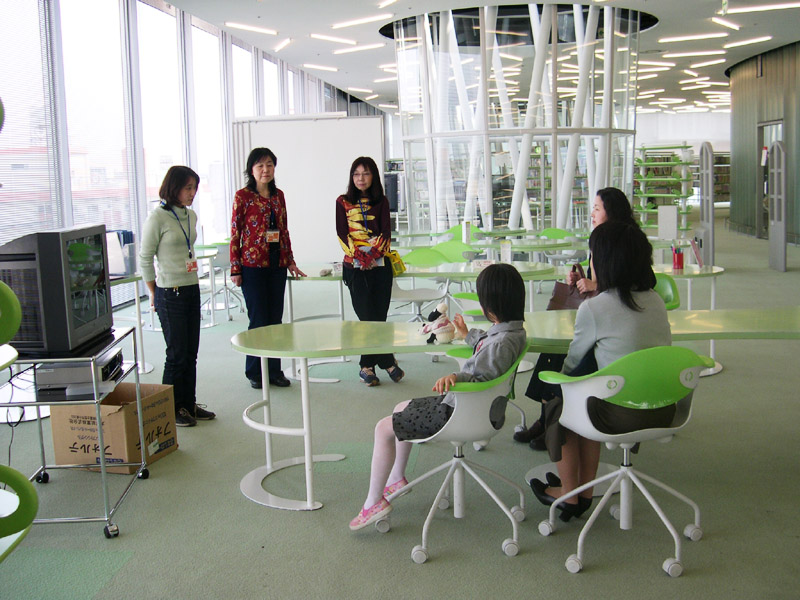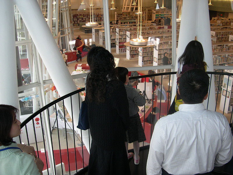 メディアテークにまだ来た事がない方や、施設の一部しか利用した事がないという方向けの入門ツアーです。施設紹介ビデオをご覧頂いた後に、ギャラリー、図書館、映像音響ライブラリー、目や耳の不自由な方への情報提供など、メディアテークの機能を説明しながら、地下1階から7階までガイドボランティアがご案内しました。