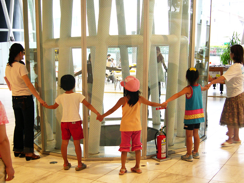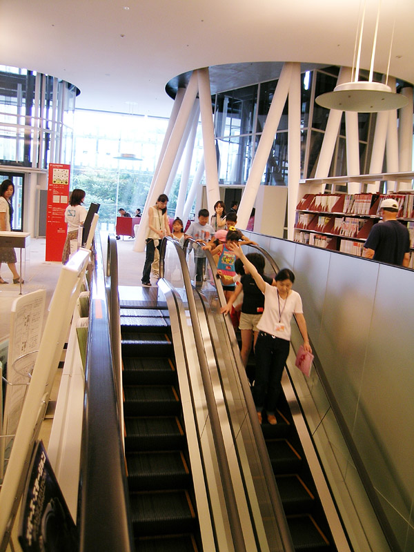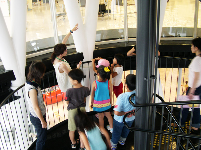 夜のメディアテークの表情をみる照明ツアーです。空間にあわせて工夫された照明デザインを観て歩きました。