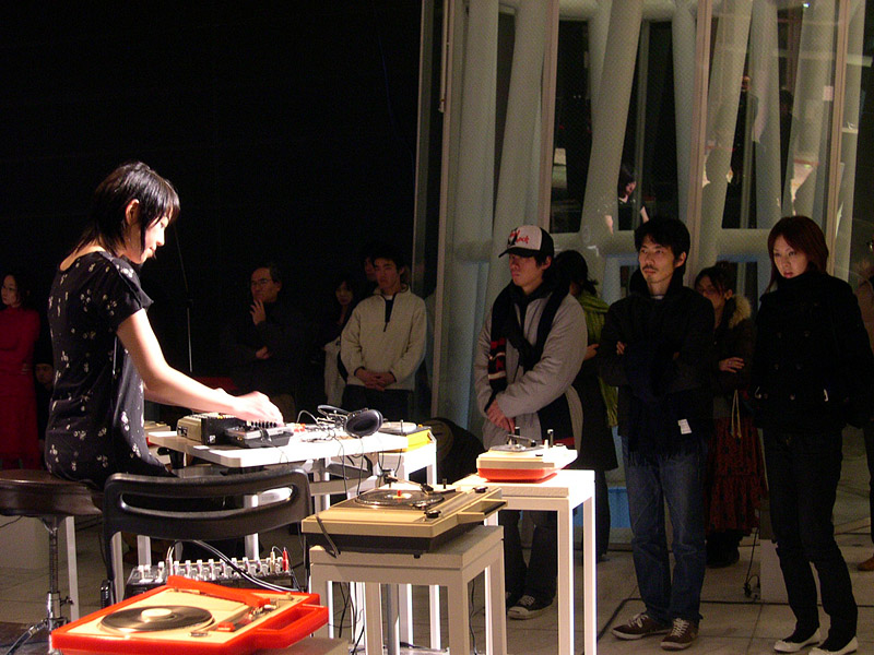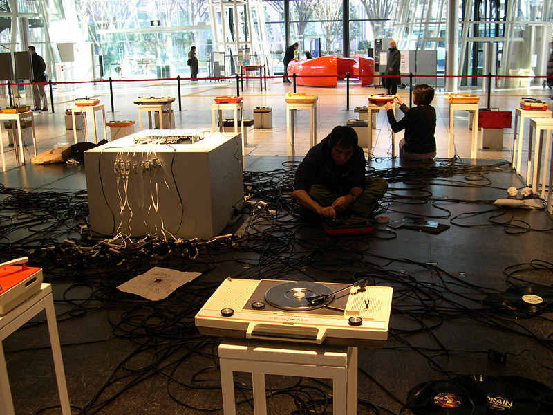 音楽家・大友良英氏(共同制作:青山泰和)によるポータブルレコードプレーヤー66台を使ってのサウンド・インスタレーションを1階オープンスクエアに展示しました。
