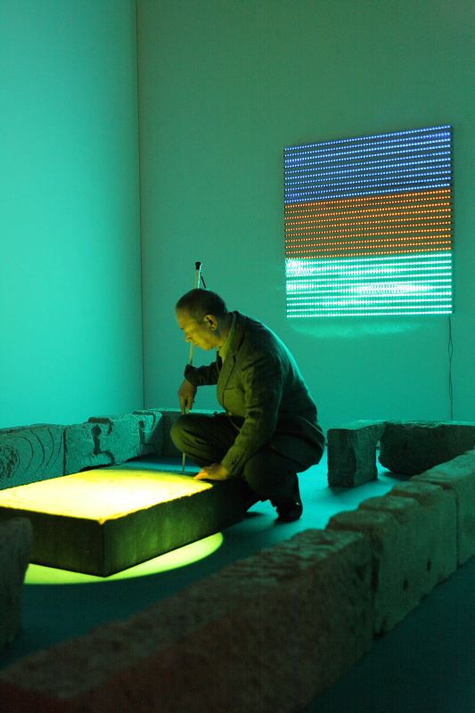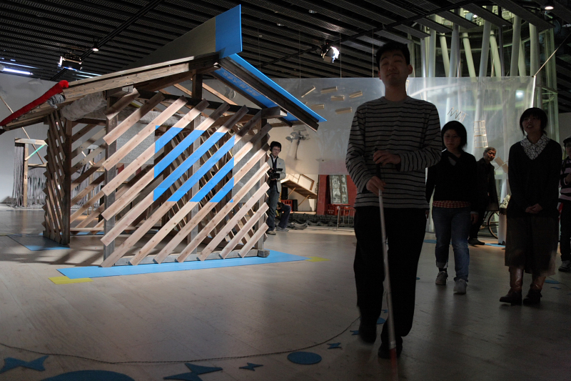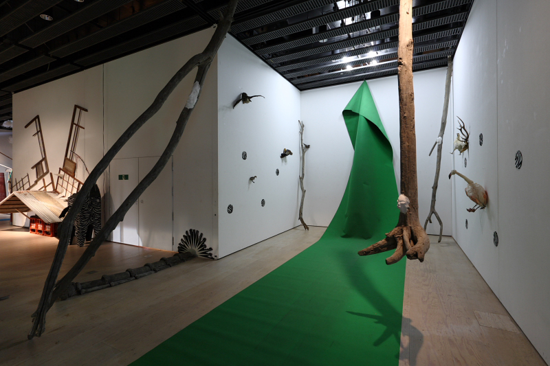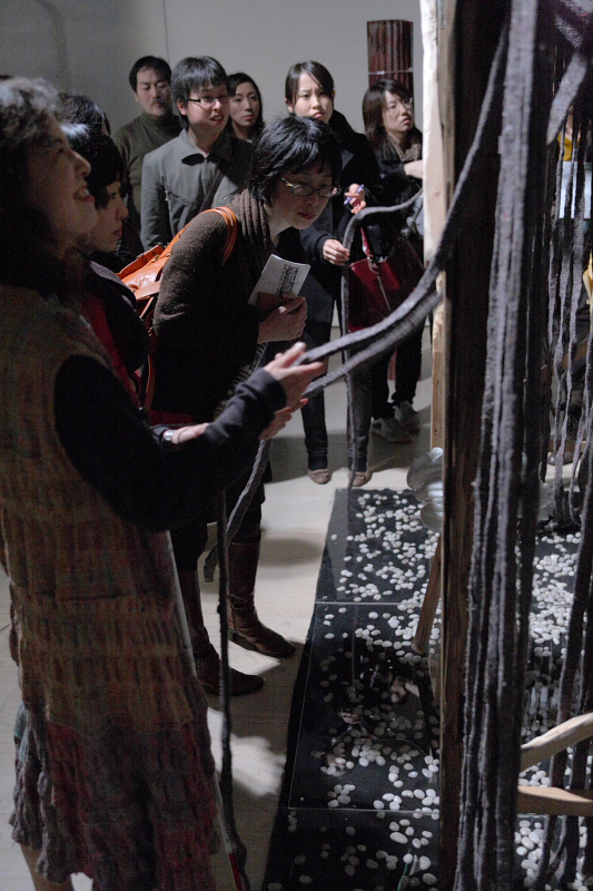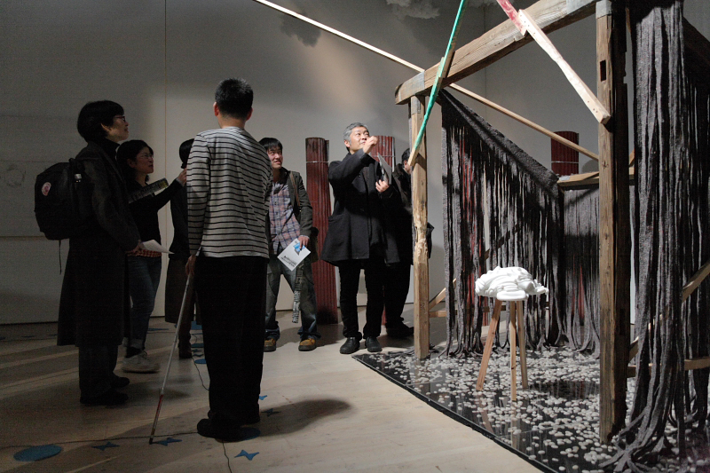 造形美術、映像、パフォーマンス、そして舞台演出まで、身体を主軸にしながら、軽やかにジャンルを横断し、性や言語・民族の壁をも越境していく表現者 高嶺格の新旧の作品世界を紹介。空間をダイナミックに使った巨大インスタレーションが、光のページェントを臨むカフェスペースとともに展開しました。