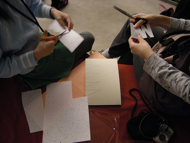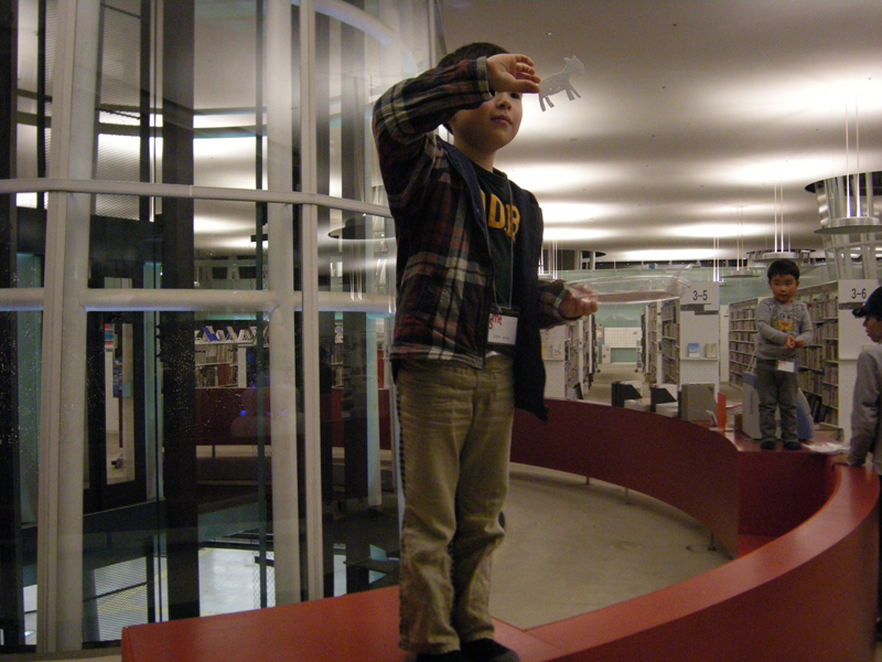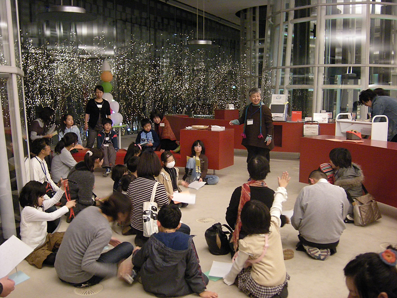 講師に美術家の関口怜子氏をお迎えし、絵本を読んだ後、夜のメディアテークを散歩。閉館後の図書館で、ふわふわと浮かぶ紙で好きなものをつくって遊びます。耳の不自由なかたへのサポートもありました。