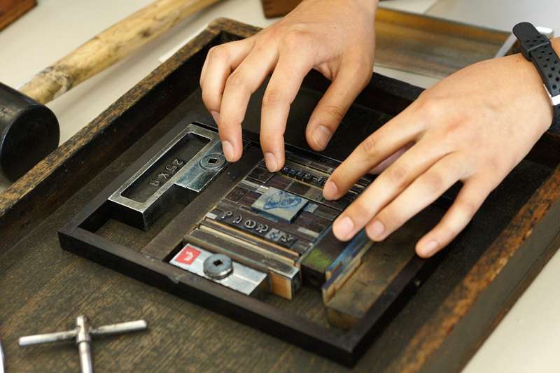 活版の歴史とワークショップの解説パネル、実際に印刷を試すことのできる印刷機を展示してパソコン以前の印刷文化を幅広く紹介しました。