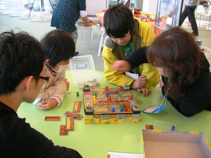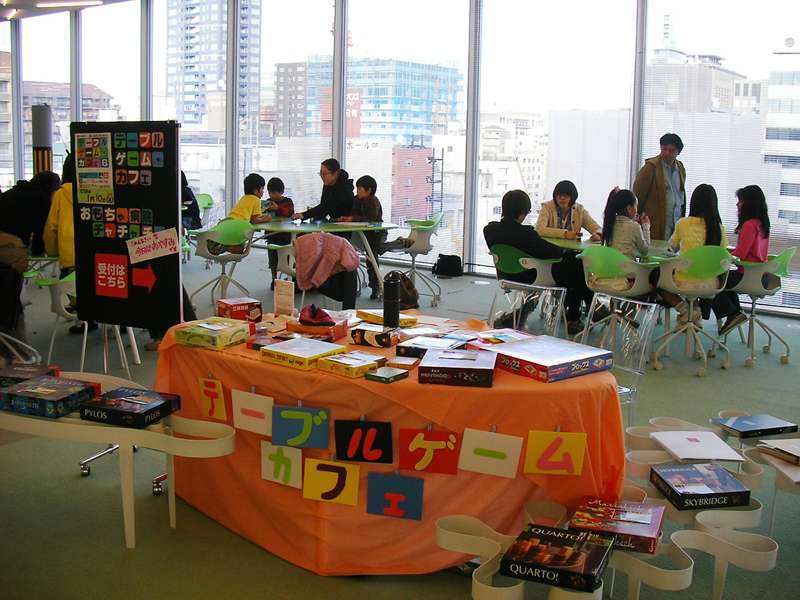 子どもも大人も一緒にテーブルを囲み、おしゃべりしながらテーブルゲーム(ボードゲームやカードゲーム)を楽しむカフェ。さまざまな人が集い、ワイワイしながら楽しく遊ぶことで、他人とともに過ごす楽しさを発見し、世代間交流をはかりました。