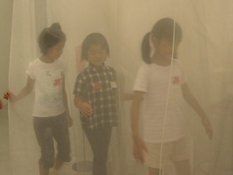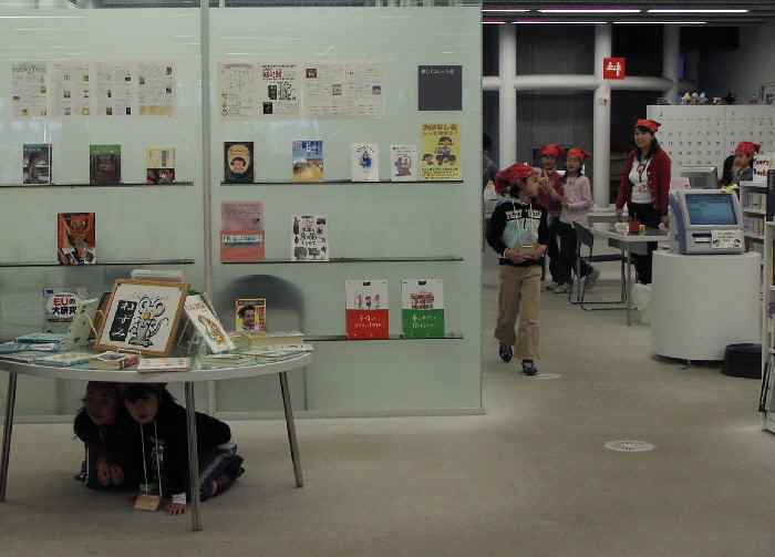 かくれんぼしながら館内を探索しておもしろい形、不思議なすきまを探してみました。また、メディアテークの利用法と公共施設でのマナーについて考えました。