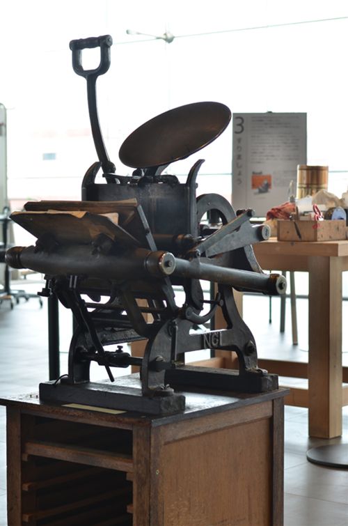活版印刷機でカードを実際に印刷し、その仕組みを学びました。また、監修者である小泉均氏からデザインについてお話しいただきました。