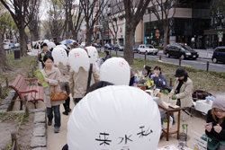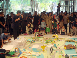 オープンスクエアでは、一番町と定禅寺通りを舞台に新しく名乗りを上げた市民手づくりによる「アート仙台場所」に連動して、さとうりさの巨大作品の展示などが行われ、同時に設置された「五間屋台」とともに人気を集めていました。また伊東豊雄展にちなんで行われたエキジビションツアーや伊東豊雄さん自らが指導する子供たちのための街づくりワークショップのほか、7階シアターで行われたライブつきの上映会など、多様なイベントが館内随所で行われ、県外から駆けつけた方々も含めたくさんの参加者でにぎわいました。