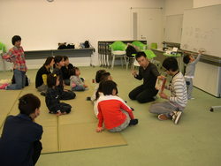 講師の森田明氏は、2時間の中で子ども達が飽きないように工夫し、読み聞かせの中にワークショップを交えながら魅力的な語りで子ども達を絵本の世界に引き込んでいました。