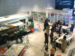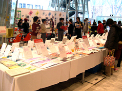 メディアテーク7歳のお誕生日に、「図書館・メディアテークフェスティバル」が開催されました。このイベントは図書館のおまつり、いわば文化祭のようなものです。知られざる図書館の魅力を伝えるべく、普段図書館を拠点に活動している、縁の下の力持ちともいうべき団体さんが集まって、それぞれの活動を紹介しました。今年のフェスティバルのテーマは「バリアフリー」。会場には、自分の名前の点訳を教えてくれるブースや、本づくりを教えてくれるブース(豆本や、もこもこした布などでできた、触察絵本など)があったほか、朗読・読み聞かせ・紙芝居など、5時間連続のおはなし会も開催されました。手話だけで進められる読み聞かせのブースでは、聞こえない子だけでなく、聞こえる子も一緒に楽しむ姿がみられます。会場中央では世界のバリアフリー絵本展が行われ、匂いのでる本、触って楽しむ本など、書店にない本に出会うことができました。「図書館・メディアテーク探検隊」では、会場後ろにまるごと入った移動図書館車や地下2階の集密書庫を探検、図書館作業室で本の装備作業(ブッカーかけ)をのぞいたりしました。図書館で「本を借りる」だけの利用者の人にとって、新たな発見があったのではないでしょうか。そして会場で一番人気だったのは、カフェ一日限定メニュー「一度は食べてみたい、絵本に登場するあの料理」。ケーキセット(絵本『ぐりとぐら』)や、ランチセット(『おだんごパン』(ロシア民話)、『3びきのくま』の五穀入りミルクスープ、他)などが登場しました。これは、あっという間に完売で、食べられなかった人は食べることのできた人の2倍近くいたのではないかと思います。今回の料理は「絵本からうまれたおいしいレシピ」という本に掲載されていますので、食べそこなったかたは、図書館でこの本を借りて、作ってみてください!