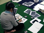 体がほぐれたところで、各自書道字典に載っている 自分の名前の形を確認しながら自由に筆で表現しました。 - 参加者は雅印の代わりに活版印刷室で使う活字をひろいました。