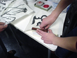 - 出来上がった自分の作品に、印泥(いんでい)と呼ばれる朱肉で押す。