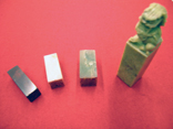 - 自分の名前や「雅号(がごう):師範になった時に、師事している先生から頂ける書道における名前」を 石材などに彫った印。