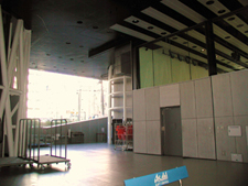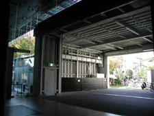 定禅寺通に面した正面出入り口をはじめ、東西と北方向それぞれに一般の出入り口がありますが、それらのほかに北側には大きな貨物が運び込める搬入ヤードがあります。裏方のスペースではありますが、1階から2階に向かうエスカレータの踊り場から見下ろすこともできるので、ご存知のかたは多いでしょう。その広々とした空間は、ギャラリーや1階オープンスクエアに大型作品を運び込んだり、さまざまな荷物の積み卸しをする作業場所であるだけでなく、イベントの時はオープンスクエアの舞台裏としても機能します。道路から搬入ヤードを経てオープンスクエアまで段差はないので、大きなバスもオープンスクエアまでそのまま入ることができるのも大きな特徴です。3月の地震の直後は、ここが全員の避難場所となり施設の復興のための作業拠点ともなりました。搬入ヤードはメディアテークという施設の機能全体を裏側から支え、非常時にもたじろぐことのない頼もしい勝手口です。