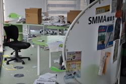 地震のときメディアテークの7階で、制作中の冊子「せんだいノート」の最終入稿作業をしていた編集スタッフは、突然の激しい揺れのなかで身動きもとれず、破損した頭上のスプリンクラーから滝のように吹き出す水の下で、ずぶ濡れになりながら揺れが収まるのを待っていたそうです。被災後の現場の床には、原稿や資料の紙がこまぎれにちぎれた状態で散乱していましたが、そのようすから当時吹き出していた水の激しさを知ることができます。仙台・宮城ミュージアムアライアンス(SMMA)事業の一環として編集されていたこの冊子は、直接、間接にミュージアムにつながりつつ、さまざまな立場で地域文化を担う人びとや話題を紹介しており、全編を通じて人や文化への暖かいまなざしに貫かれたフリーペーパーとなる予定でした。しかしフリーペーパーとしては年度内の発行が条件であったこと、南三陸町の話題や、被災館を含む東北地方のミュージアムマップなど内容の再検討が必要となったことなどにより、「せんだいノート」の印刷は見合わせとなり、発行は凍結せざるをえませんでした。それを救ったのはSMMA編集スタッフをはじめこの冊子の制作に関わった多くの人びとの熱意であり、最終的に印刷出版を申し出てくださった三樹書房のご厚意でした。マップに掲載した東北六県の900を超える大小のミュージアムにあらためて連絡し、それぞれの震災後の状況を追記した「せんだいノート」は、ふるさとへの思いと復興への祈りを載せて、10月から全国の書店に並び始めています。