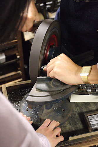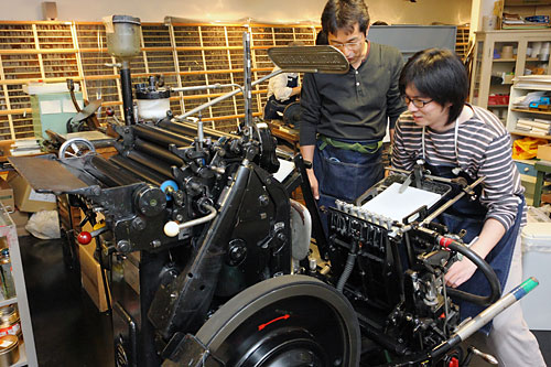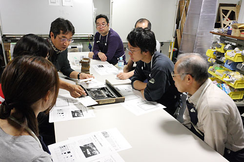 今年度の活版印刷ワークショップが開催されたのは6月・8月の2回。いずれも「初級編」として初めて活字に触れ・親しもうとするかたを対象にしたもので、10月のワークショップは、その「初級編」を経験されたかたがたへのステップ・アップ講座として、活動拠点を日当たりのよい7階スタジオから大型プレス機や馬が揃う地下の活版印刷工房へと移し、そのアナログ技術の奥深さ・楽しさを体験する目的で開講されました。
