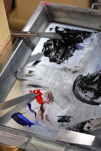 ワークショップ中級編は、開始とともにどんなデザインで制作するかを考え悩む事から始まりました。ある参加者は、文字だけではなく記号を用いて見事な鯨の図を組み、またある別の参加者は、李白の漢詩の文字組みに挑戦し、馬には揃っていない簡体字を作成するべく、既成の活字を加工し組み合わせながら精緻な作品を仕上げました。失敗してもよいからなるべく自分の力で、を大事として、自ら活字を探し出し、文字を組み、自身でチェースに収め、そして適切なインクの色が出るまで混色を試し、解版する…限られた時間内での制作でしたが、少人数制を活かし、とことんこだわり抜いた傑作が生み出され、それぞれに満足のいく作品が完成されました。また、参加者の皆さんがご自身で制作なされた作品に満足頂ける様子は、スタッフ一同も嬉しく思うばかりです。