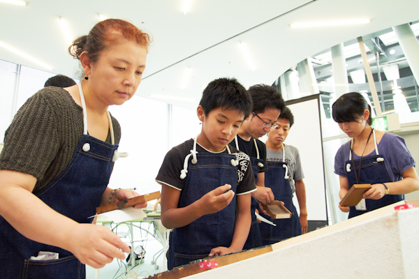 この日は7階のスタジオaにて行われ、お隣のスペースではシニアパソコン講座が開かれていました。伝統的な技術を後世に伝えていくためのオールドメディアと、最先端の知を追求するためニューメディアが、開放的なフロアに存在し、若者から年配の方までが熱心に学ぶ姿は、まさにメディアテークらしさ溢れる光景でした。