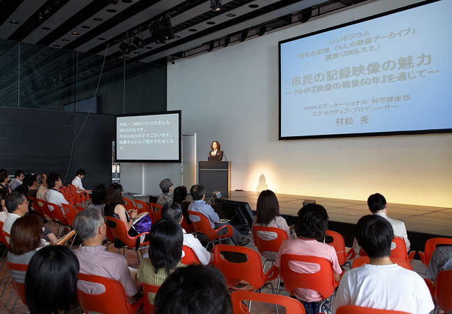 本番組が制作されたのは2005年、戦後60年の節目の年。市民の記録した映像から改めて戦後を見直したとき、また違うものが見えてくるのではないか、そのような思いから番組を企画したという。個人で撮影した映像の募集を始めたのが2004年半ば過ぎ、その呼びかけに応える形で約700人から数千本のフィルムが寄せられた。村松氏が主に担当したのは、高度成長期にあたる1960年から1975年。番組制作の過程で村松氏自身が感じた市民の記録映像の持つ力や可能性について、具体的な事例を紹介しながら話は展開された。
