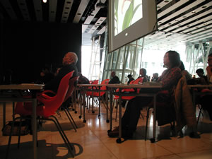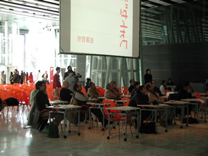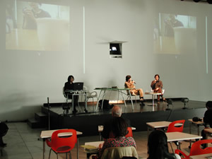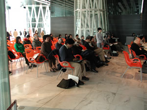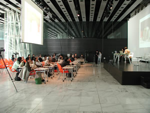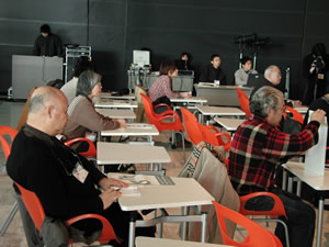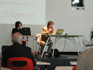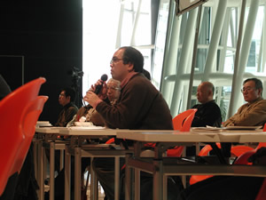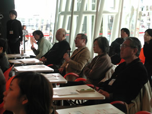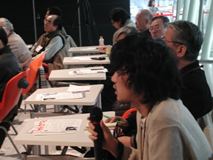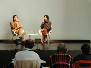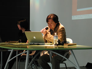 終了間際にも、お集まりの聴講者からの質問が次々と出され、それをきっかけに相互の意見の盛り上がりを見せかけた時点で、あいにくの時間切れとなって しまいました。そのあたりの「仕切り」等に関しては、コーディネータ役である実行委員の責任でもあり、残念にも思いますが、しかしそこを今後の課題としながら、回を重ね、より多くの作品や作家に触れることにより、一層のsmtならではの「場」に近づいていきたいと考えています。