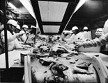 - 牧場から巨大精肉工場に運ばれた「牛」が「肉」として製品化され、市場に届けられるまでの流れを記録していく。細分化された解体作業、機械的で正確に進行する過程が、映像と編集のリズムによってみごとに表現されている。