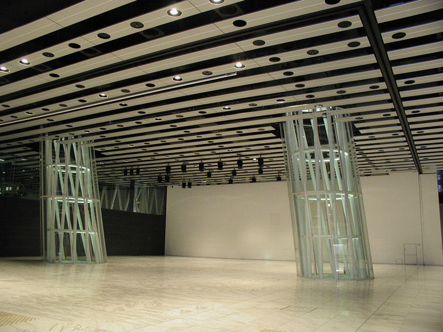 4.2 メートルの天井高があり、可動パネルで自由に仕切ることができる展示空間です。