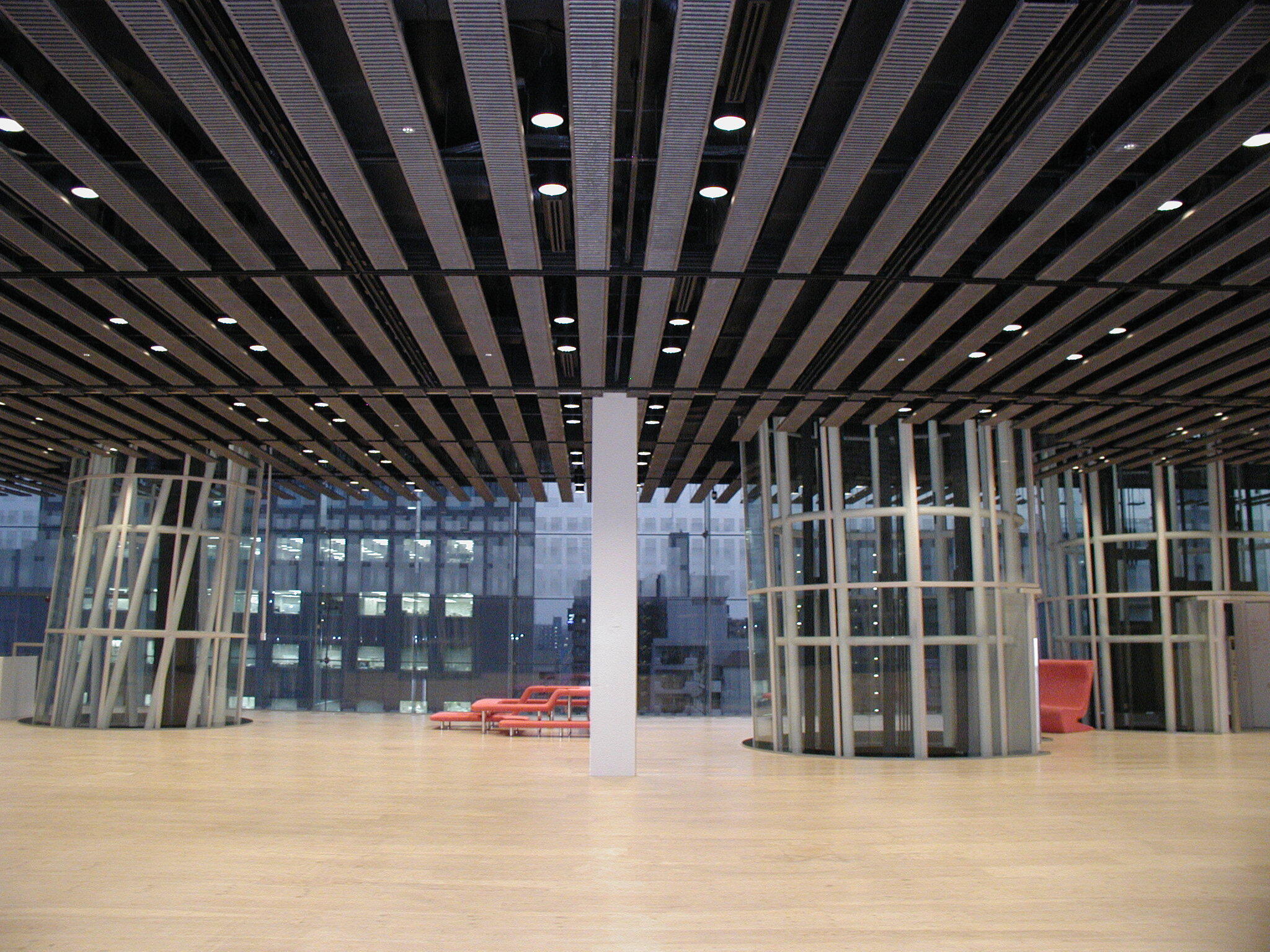 • 空調システムは、エリアに分けた天井のダクト(吹き出し口)から降下する機械空調方式です。