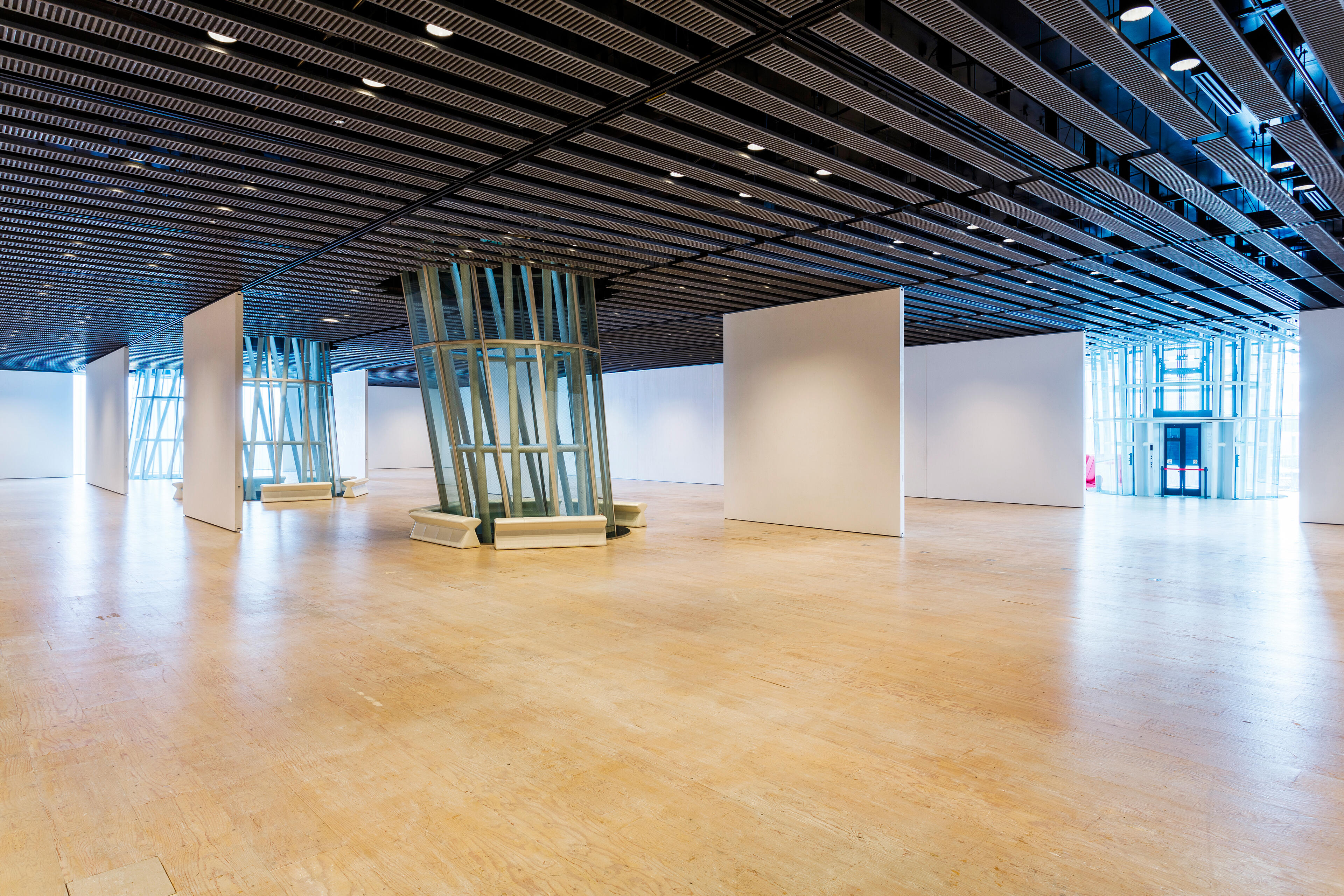 天井高 4.2 メートル、展示面積およそ 1,095 平方メートルの展示空間です。
